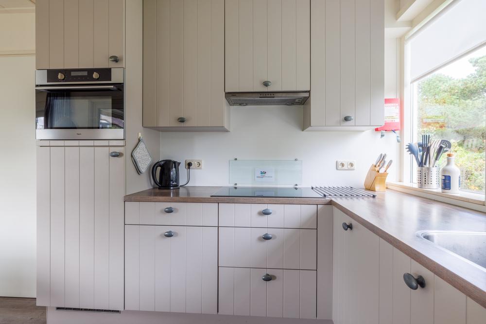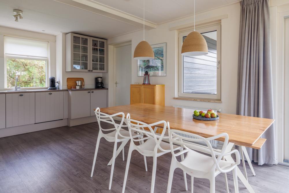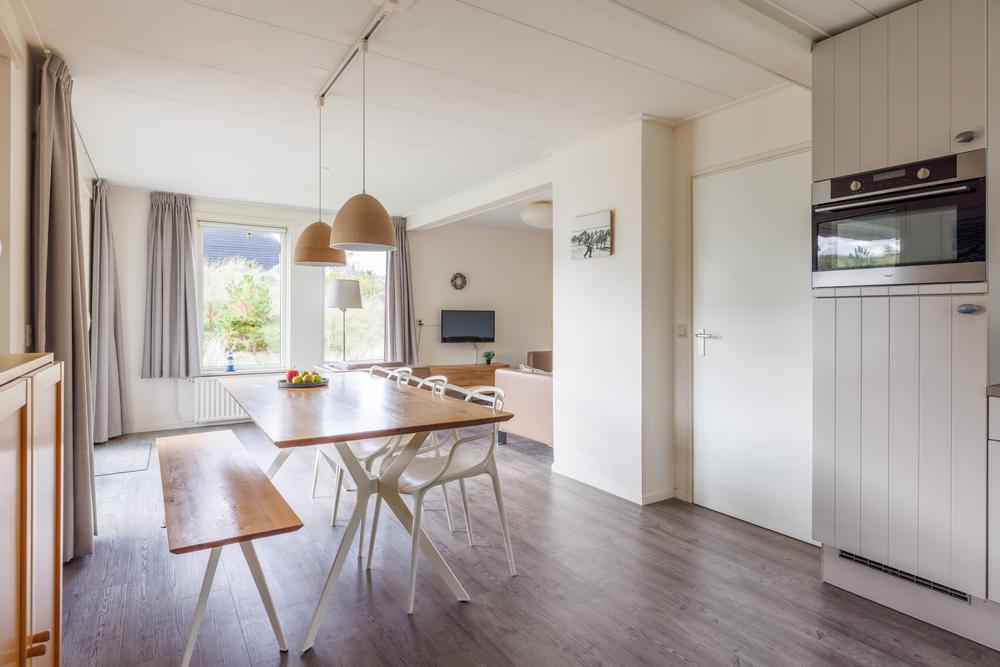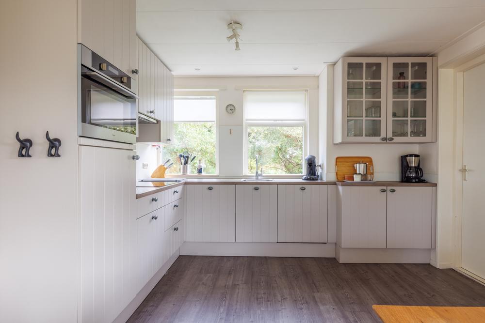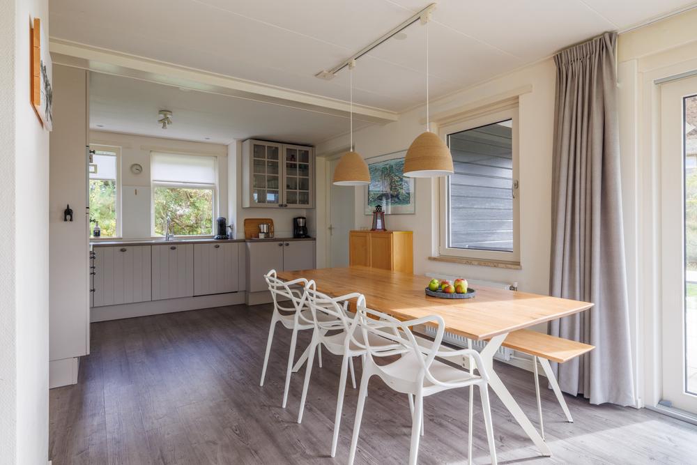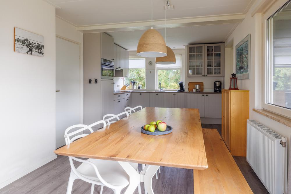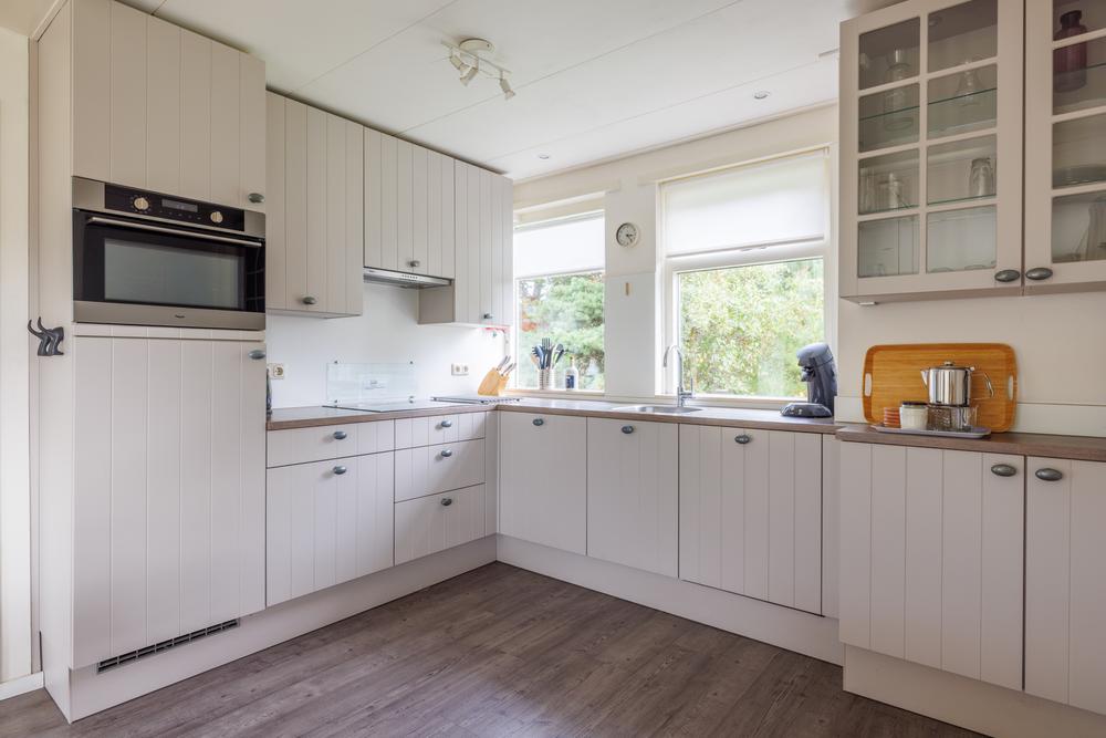 De ruime woonkamer straalt een warme sfeer uit, met veel natuurlijke lichtinval en directe verbinding naar de tuin. De open keuken in hoekopstelling is modern uitgevoerd en voorzien van kwalitatieve inbouwapparatuur van Siemens, waaronder een oven, vaatwasser, kookplaat en koelkast en een kleine vrieskast in bijkeuken.