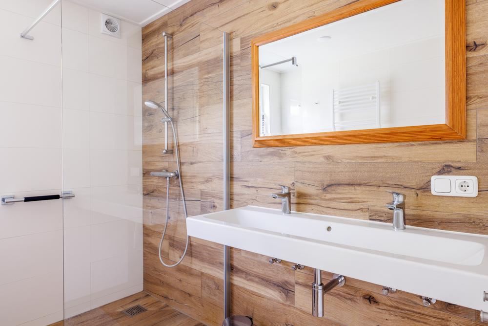 De badkamer op de begane grond beschikt over een tweede toilet, wastafel en douche en is geheel vernieuwd.