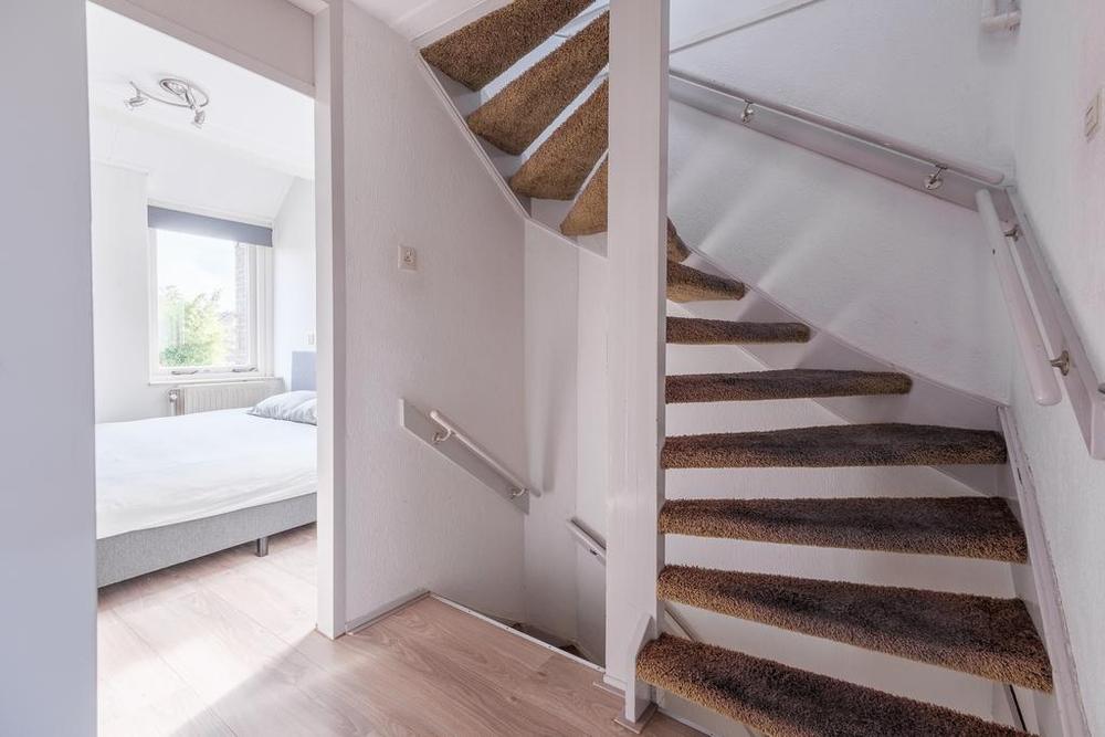 Op de eerste verdieping vind je 3 slaapkamers, de hoofdslaapkamer aan de voorzijde. Deze heeft een royale maat van 13 m². De twee andere slaapkamers van 12 en 8 m² liggen aan de achterzijde. De mooi gerenoveerde badkamer is zeer compleet: er is een badkamermeubel, ligbad, douche en zwevend toilet.