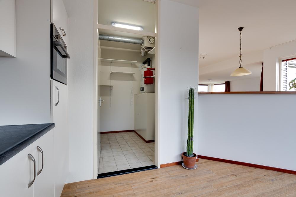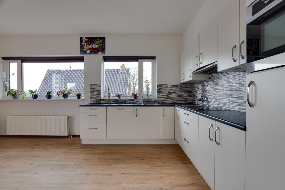 De keuken is enkele jaren geleden vernieuwd, praktisch en verzorgd ingericht en met voldoende werk- en kastruimte. In de keuken is inductie kookplaat, combimagnetron, afzuigkap en koelkast aanwezig. Aansluitend bevindt zich een aparte CV- en proviandruimte, handig voor extra opslag dichtbij de keuken en zonder dat dit ten koste gaat van de leefruimte.