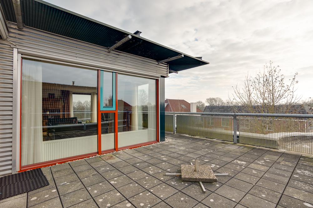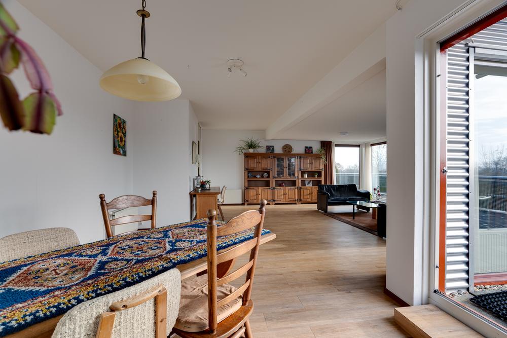 De indeling is ruim en logisch opgezet. De woonkamer met open keuken vormt samen een zeer royale leefruimte. Dankzij de grote raampartijen rondom valt het daglicht rijkelijk naar binnen en verandert de sfeer gedurende de dag op een natuurlijke manier mee met het licht. Dit zorgt voor een open en aangenaam woongevoel, waarbij binnen en buiten prettig met elkaar in verbinding staan. Er is volop ruimte voor een comfortabele zithoek en een grote eettafel, waardoor deze leefruimte zich zowel leent voor rustige momenten als voor het ontvangen van gasten. Dankzij de beschutte zuidelijke ligging van het riante dakterras kunt u vanaf vroeg in het jaar tot laat in de nazomer heerlijk privé genieten van de buitenruimte. En dat met een panoramisch uitzicht over Grootegast.