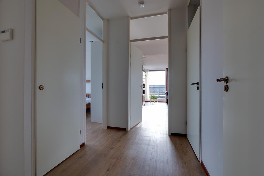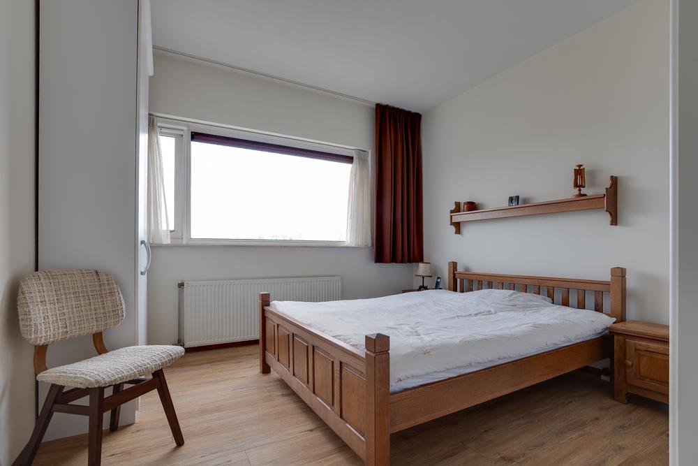 Het penthouse beschikt over twee slaapkamers. De hoofdslaapkamer meet 13 m² en biedt ruim plaats aan een tweepersoonsbed en vaste kasten. De tweede slaapkamer van 8 m² is flexibel inzetbaar en uitstekend geschikt als logeerkamer of hobbyruimte. De badkamer is verzorgd en functioneel uitgevoerd en beschikt met een ruime douchehoek en breed badkamermeubel over voldoende ruimte. Het toilet bevindt zich naast de badkamer.