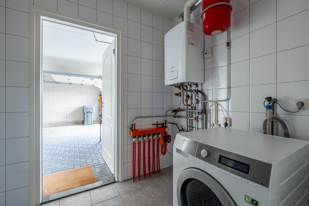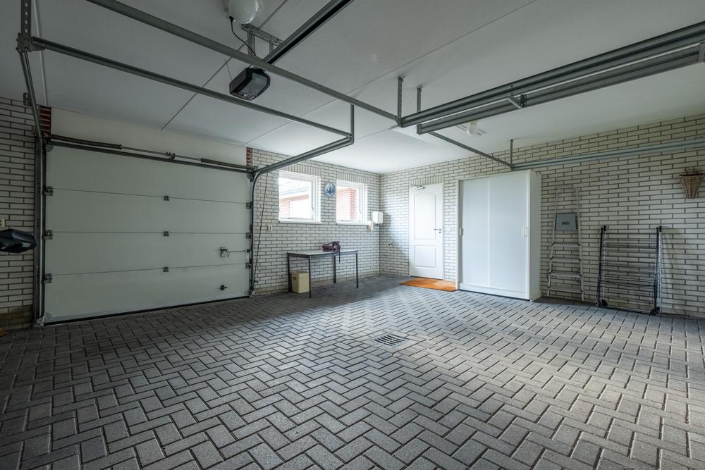 Via de hal is ook de bijkeuken, bereikbaar en van daaruit heb je toegang tot de inpandige dubbele garage van plm. 36 m², handig voor het stallen van auto’s, fietsen of als hobbyruimte. Vanuit de garage is de zolderberging via een vlizotrap toegankelijk.