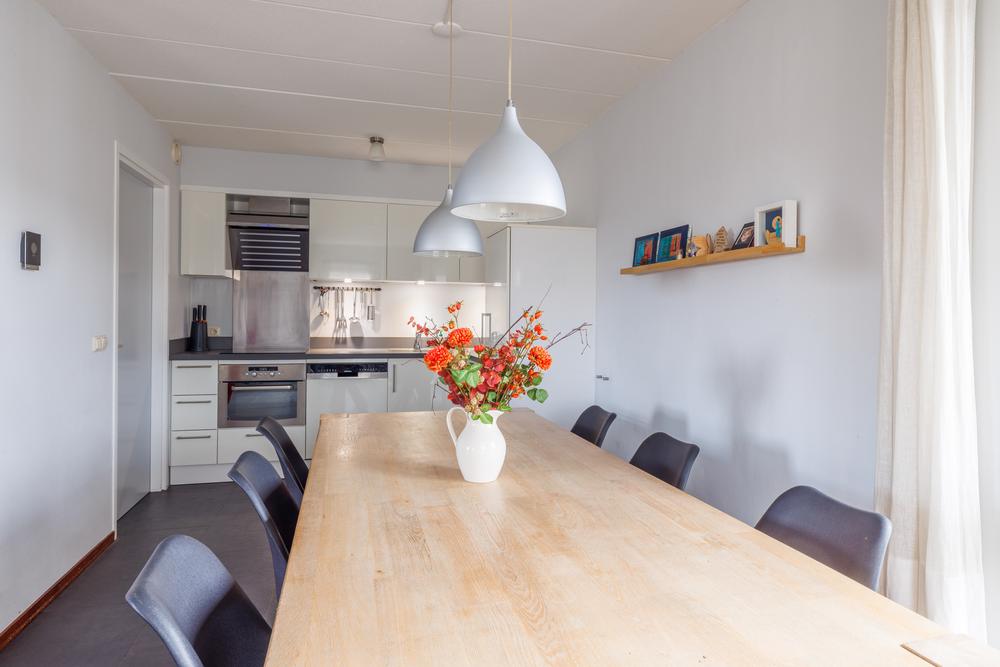 Via de entree komt u in de hal met trapopgang, toilet en toegang tot de woonkamer. De tuingerichte woonkamer is licht en ruim opgezet en staat in open verbinding met de keuken. De keuken is voorzien van een kookplaat, afzuigkap, vaatwasser en een natuurstenen werkblad.