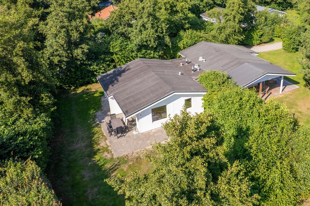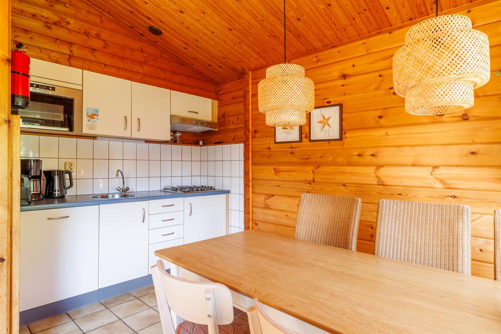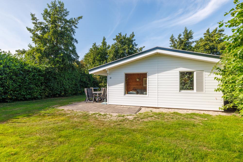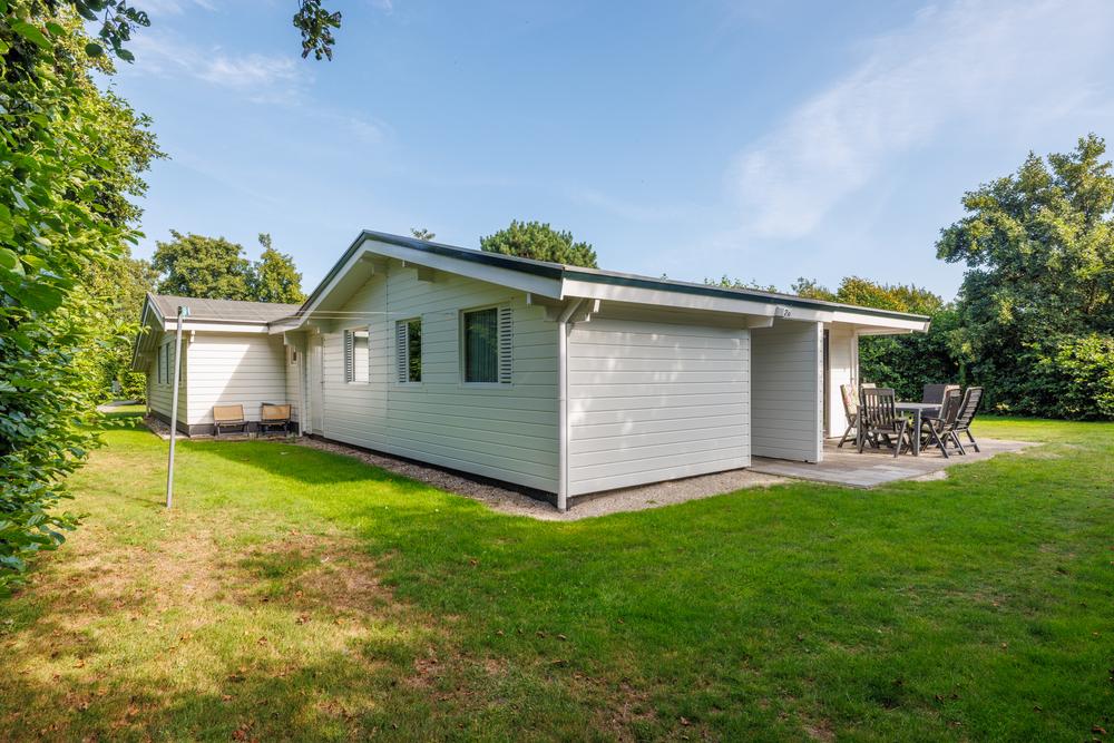 De woning ligt op een royaal perceel met veel privacy en beschikt over een praktische en sfeervolle indeling. De ruime woonkamer met open keuken vormt het hart van het huis, waar natuurlijk licht rijkelijk binnenvalt dankzij de raampartijen aan meerdere zijden. De keuken is functioneel en sluit perfect aan bij het recreatieve gebruik. Vanuit de centrale hal zijn drie slaapkamers bereikbaar, waardoor vakantie vieren met gezin, familie of vrienden altijd comfortabel blijft. De badkamer is voorzien van een douche en wastafel, het toilet is separaat geplaatst. Zowel indeling als afwerking zijn gericht op gebruiksgemak en een ontspannen verblijf.
