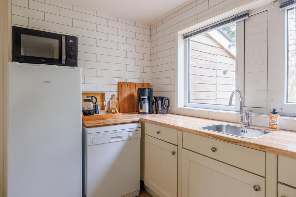 Binnen treft u een lichte en sfeervolle woonkamer met houtkachel en grote raampartijen, waardoor u geniet van veel licht en een uitzicht op de tuin. De keuken is compleet uitgerust met diverse inbouwapparatuur en van alle gemakken voorzien.