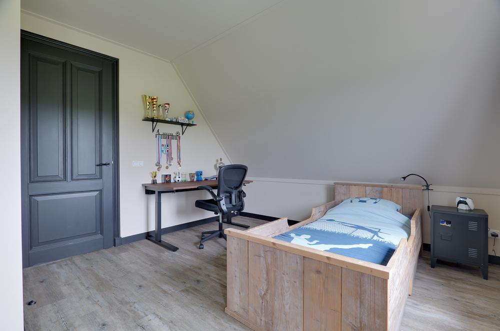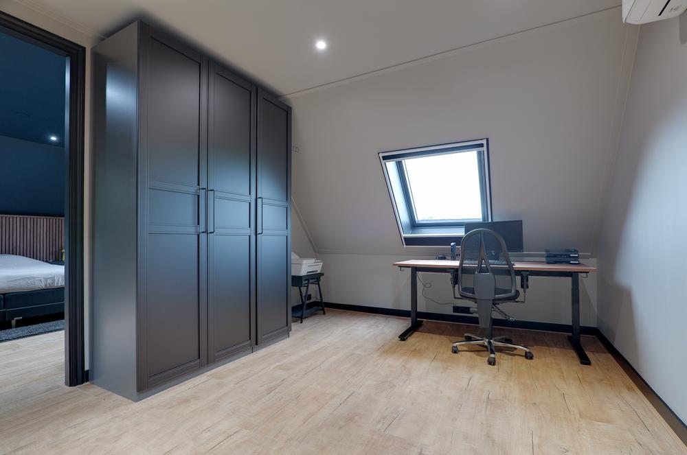 Binnen in de woning valt meteen de ruimtelijkheid en lichtinval op. De woonkamer voelt warm en uitnodigend, met grote ramen die het buitenlicht volop binnenlaten. De moderne open keuken sluit hier naadloos op aan en is ingericht met oog voor gebruiksgemak en stijl. Alles klopt, van materiaalkeuze tot indeling. Boven zijn meerdere comfortabele slaapkamers en een luxe badkamer die is voorzien van vloerverwarming. Ook hier zie je de zorg waarmee dit huis is gebouwd en onderhouden: strak, modern en tot in detail afgewerkt.