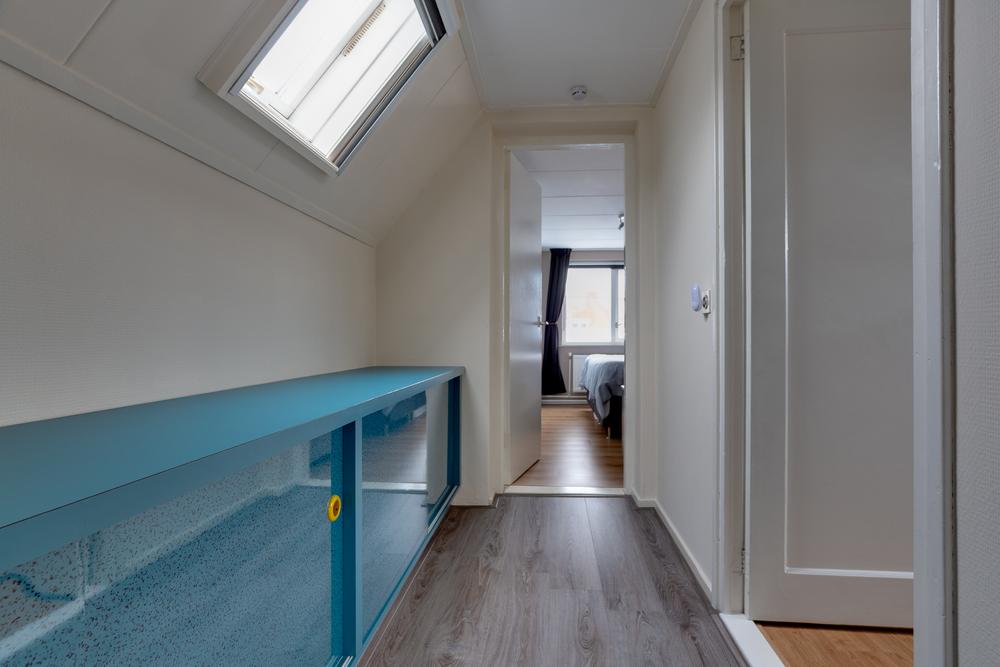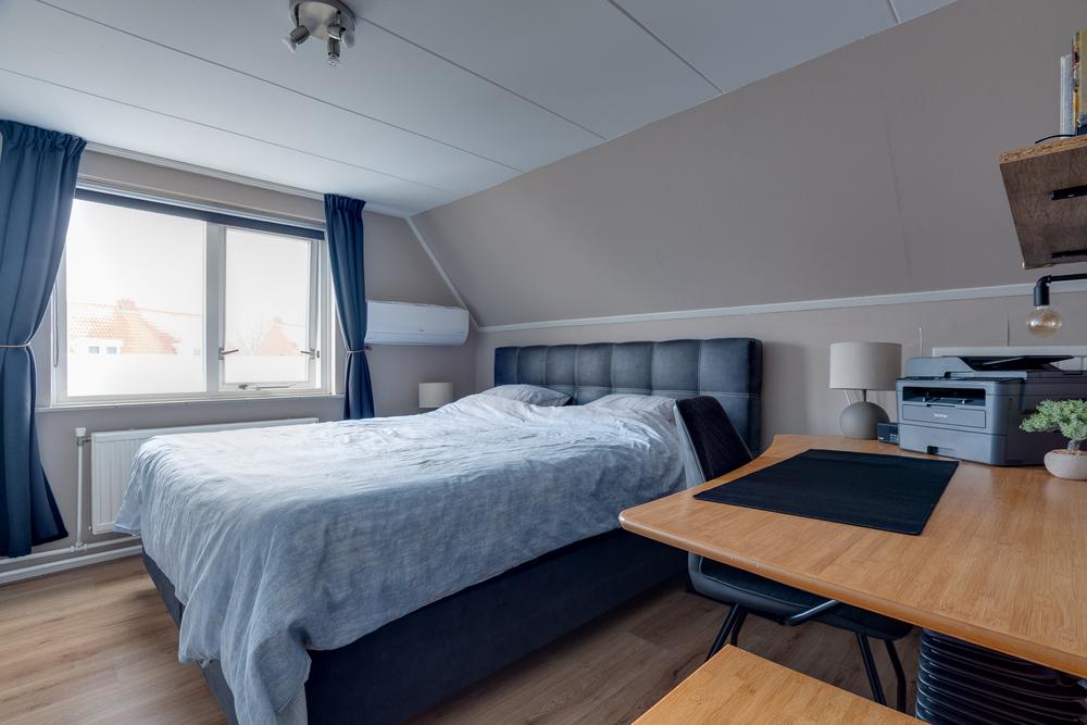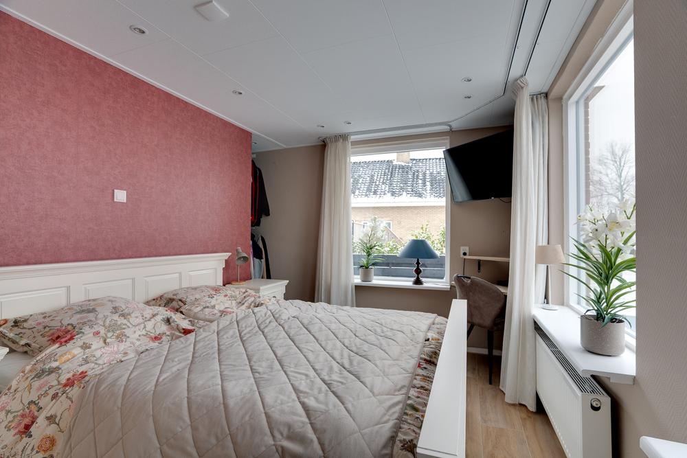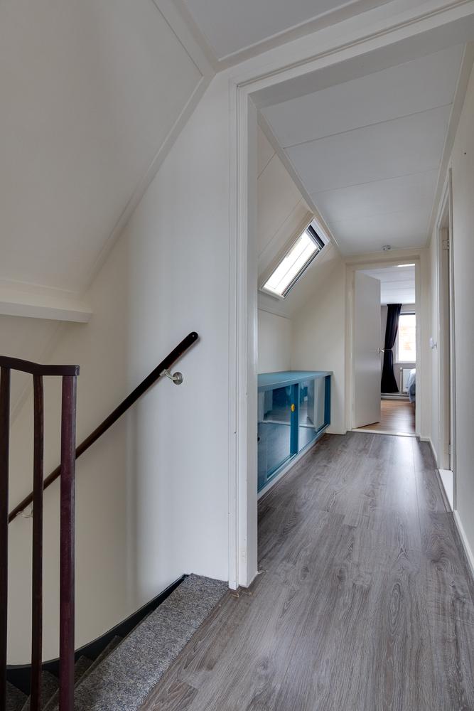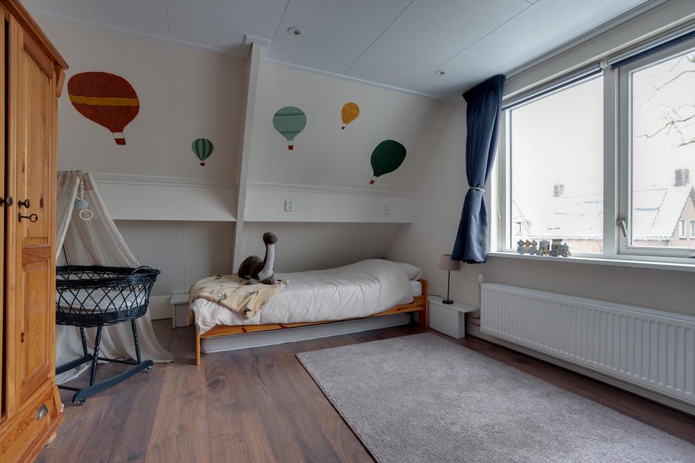 Op de verdieping zijn drie slaapkamers van 15 m², 12 m² en 6 m². De kamers zijn praktisch ingedeeld en goed bruikbaar, met op de overloop en aan de slaapkamer aan de achterzijde voldoende kastruimte. Alles is gericht op prettig wonen, zonder verspilde meters.