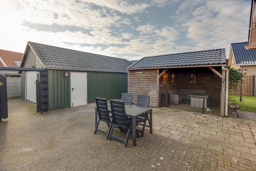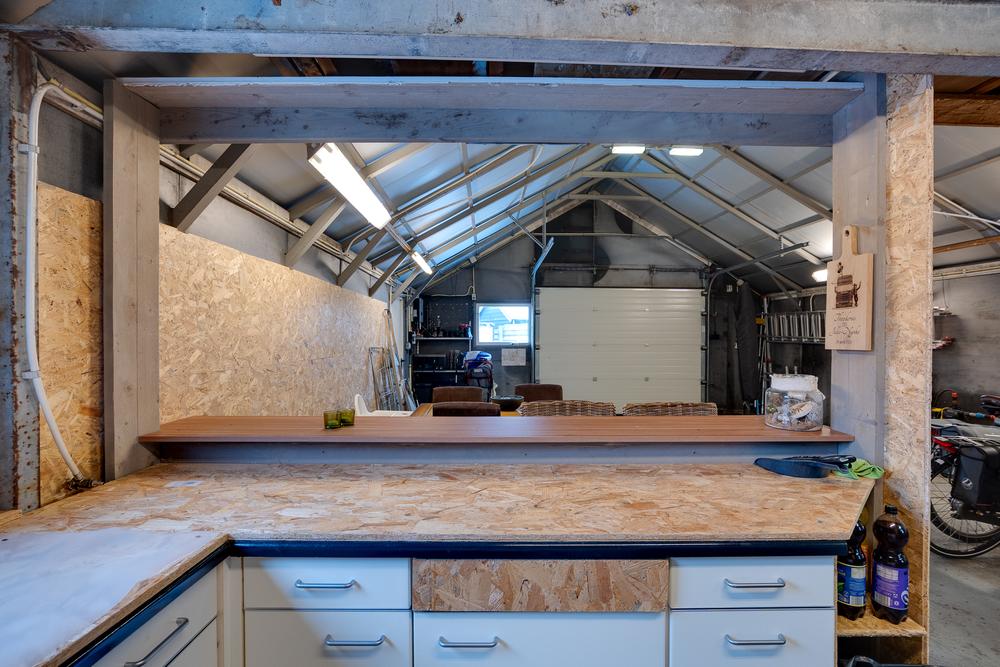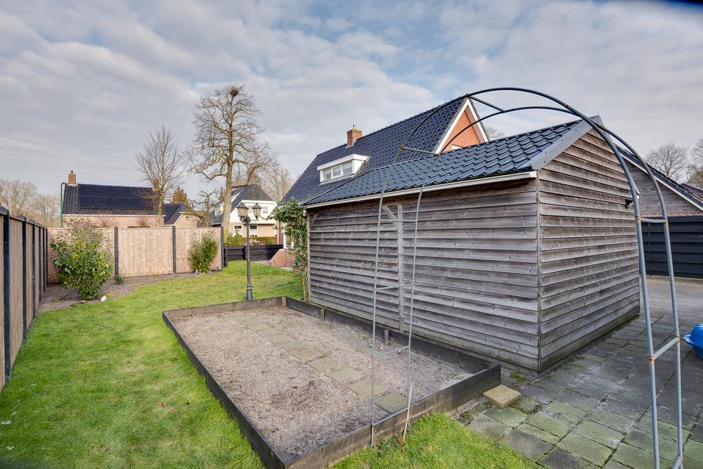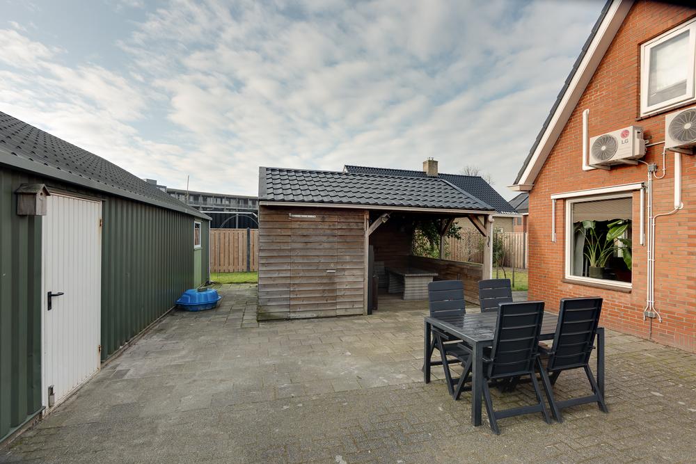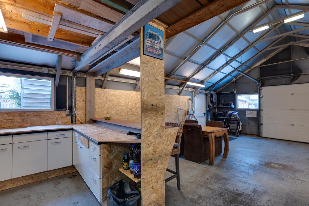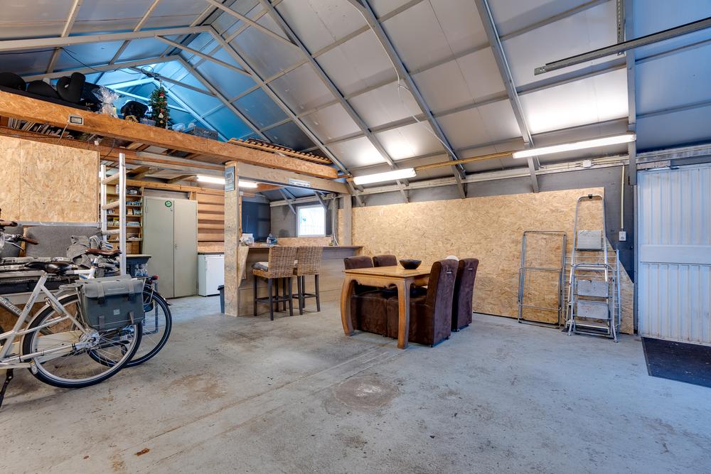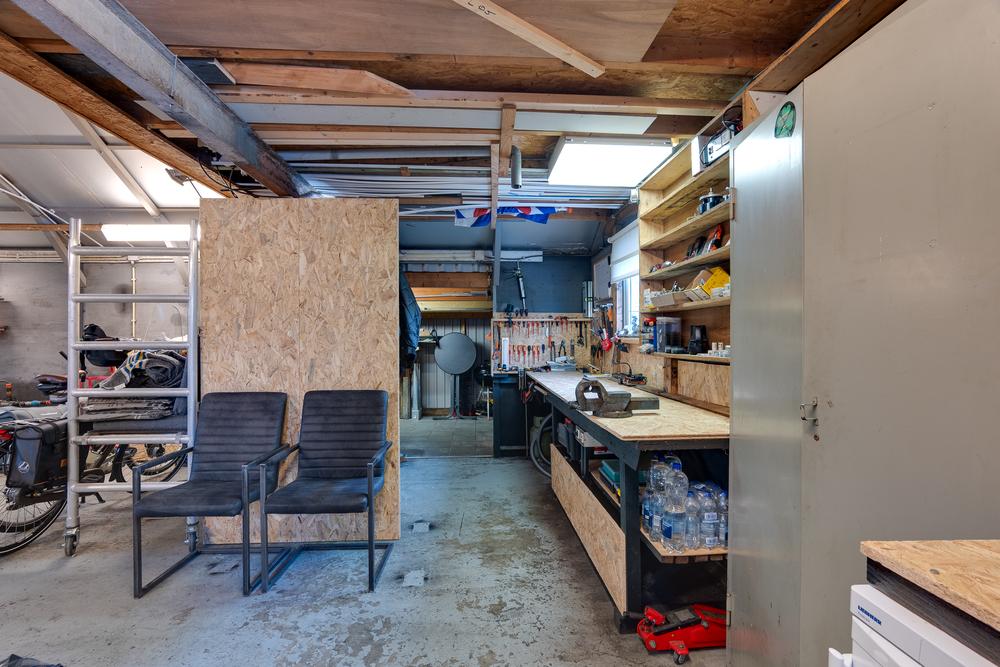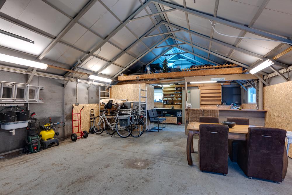 De vrijstaande garage van 59 m² biedt ruimte die je normaliter niet snel binnen de bebouwde kom vindt. Perfect voor wie graag sleutelt, ruimte nodig heeft voor meerdere auto’s of een hobby serieus wil aanpakken. Dankzij de nokhoogte van bijna 4 meter is het plaatsen van een autobrug hier geen enkel probleem. Aansluitend is er een berging van 13 m² en daarnaast nog een extra schuur van 7 m² met een overkapping van 11 m².