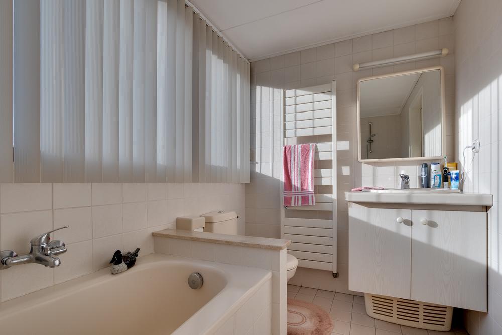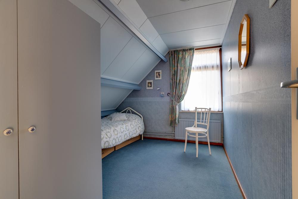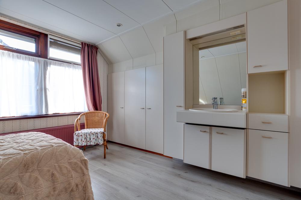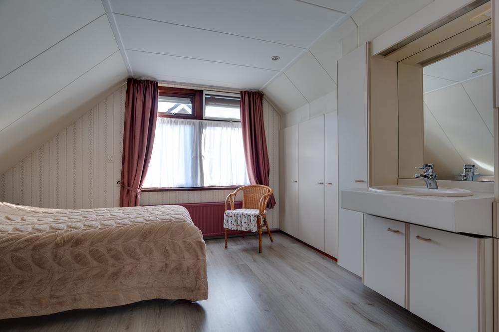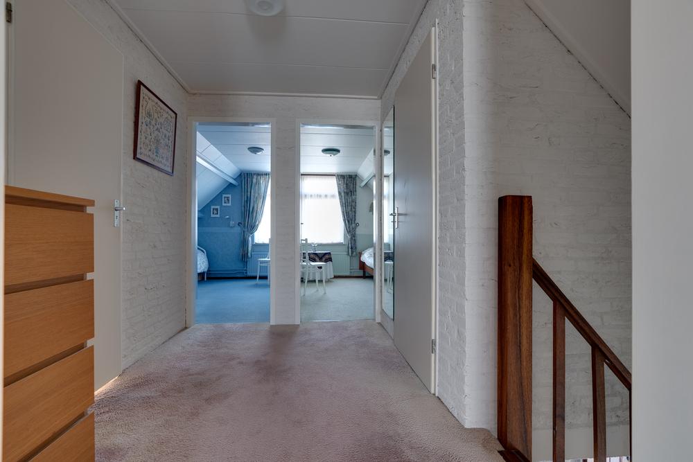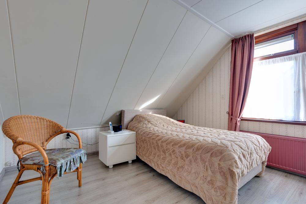 Boven zijn drie slaapkamers die dankzij de kapvorm knus en efficiënt aanvoelen, met handige bergruimte achter de knieschotten. De badkamer ligt centraal op de verdieping en beschikt over douche, wastafelmeubel en tweede toilet. Op de overloop is nog extra kastruimte.