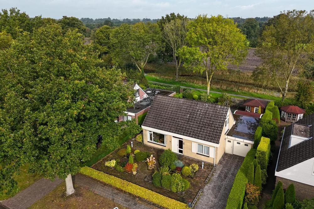 De woning staat op een mooi perceel aan de rand van het dorp, met vrij uitzicht over een brede groenstrook en een waterpartij met waterlelies. Direct achter de tuin loopt een autoluw fietspad richting de weilanden – perfect voor een ochtendwandeling of fietstocht.