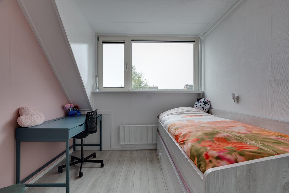 De tweede verdieping is de extra troefkaart. Hier is een vierde slaapkamer van 12 m² gemaakt met daglicht onder de kap en daarnaast een aparte werkplek. Onder de schuine kap is handige bergruimte waardoor de kamers zelf heerlijk opgeruimd blijven.