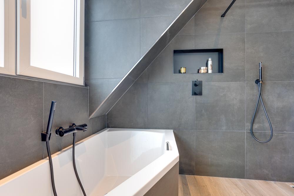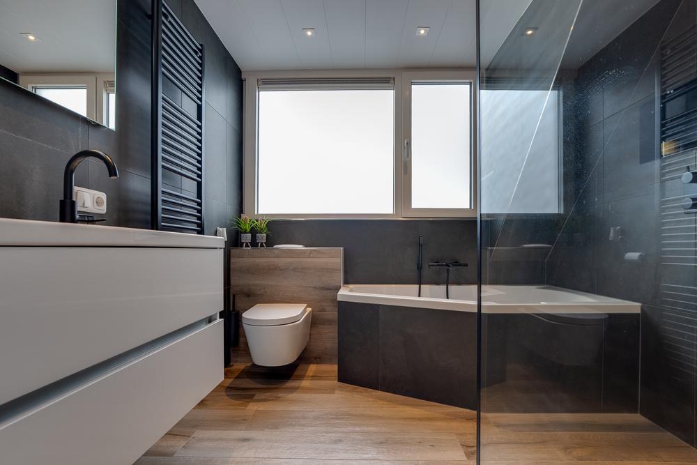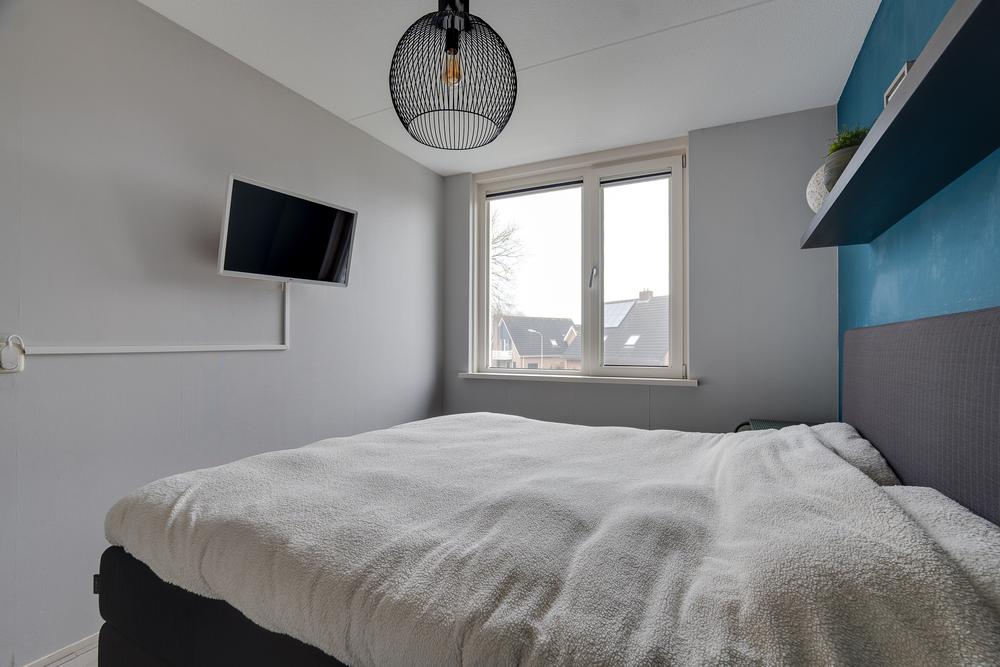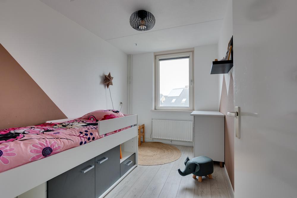 Op de eerste verdieping liggen drie volwaardige slaapkamers en een frisse, complete badkamer. Aan de achterzijde bevindt zich de grootste slaapkamer van 12 m². Aan de voorzijde liggen twee sfeervolle kamers van 8 m² en 8 m² die zich uitstekend lenen als kinder- of logeerkamer. De badkamer van 5 m² is uit 2020 en biedt een inloopdouche, ligbad, tweede toilet en een breed wastafelmeubel.
