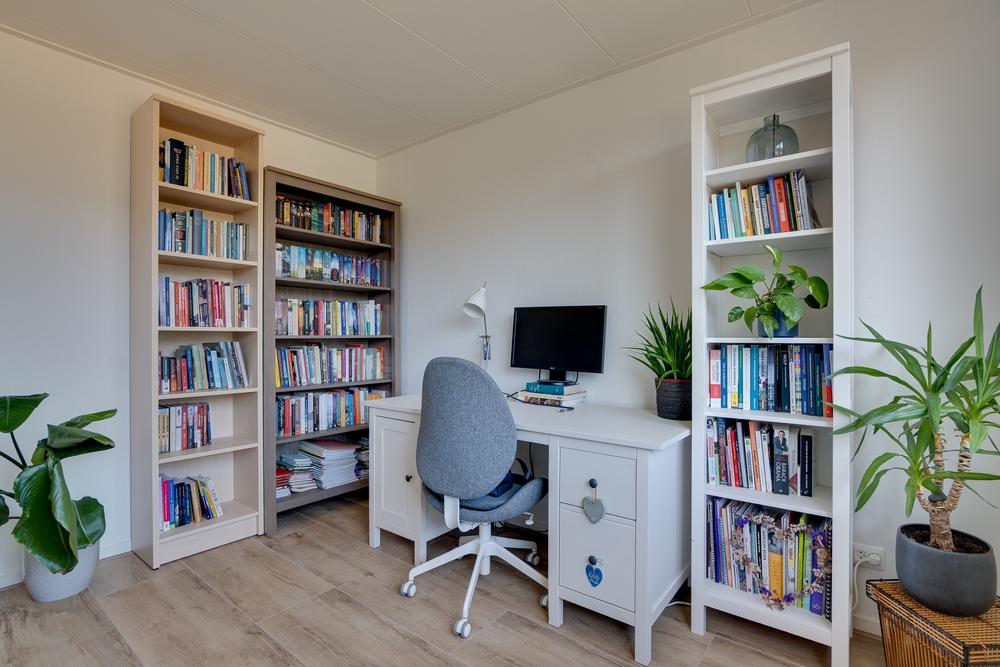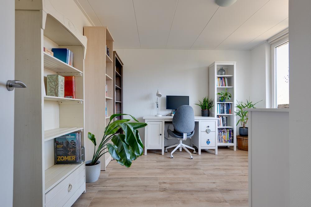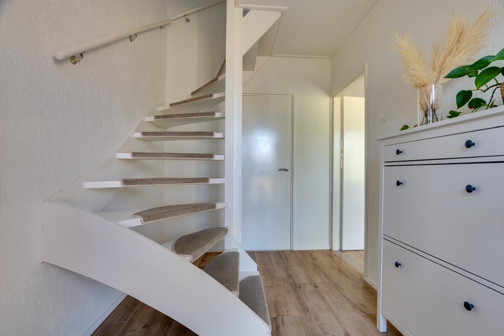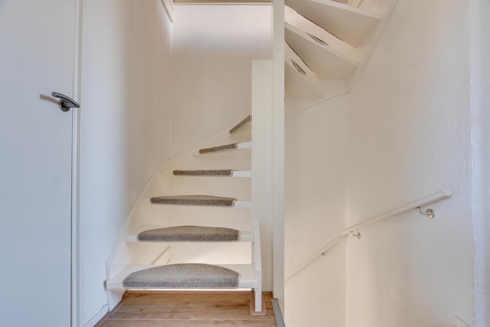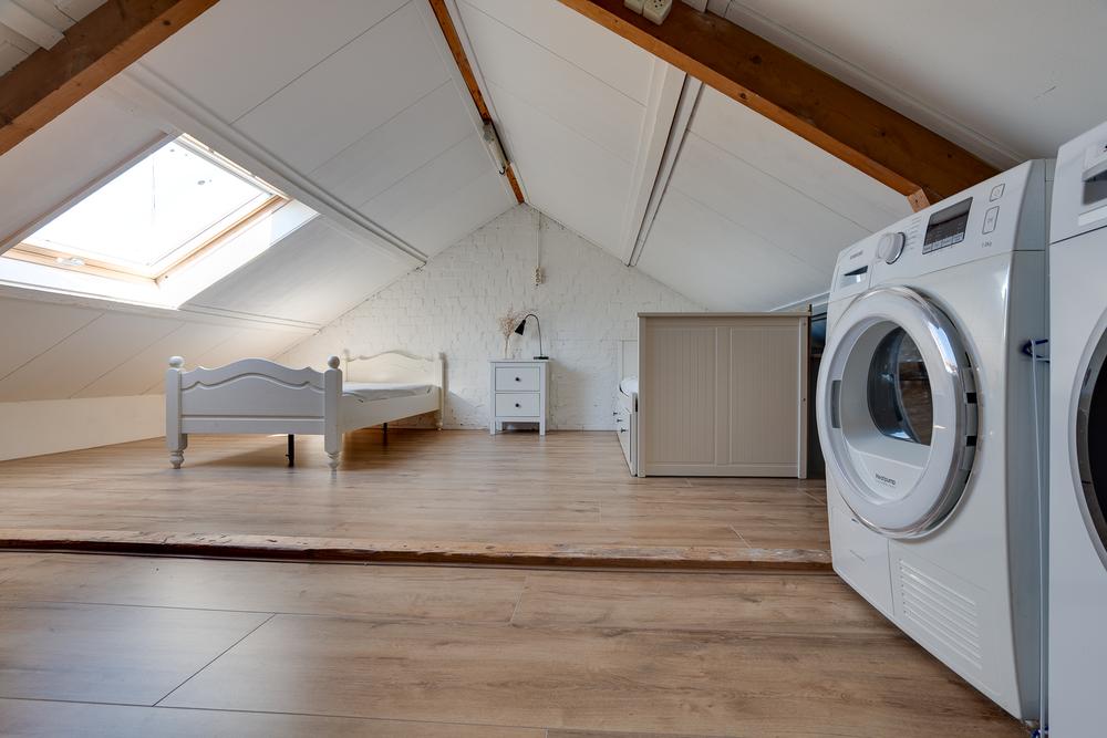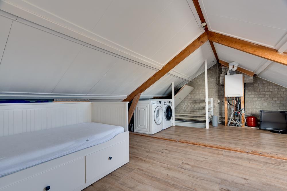 Een vaste trap leidt naar de ruime tweede verdieping met aansluitingen voor het witgoed, de CV-ketel en daarnaast nog voldoende ruimte om deze verdieping te gebruiken als bergzolder of extra slaapkamer. Gebruik je deze verdieping iets minder, dan is het eenvoudig af te sluiten met een luik.