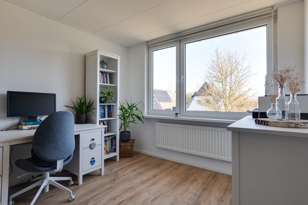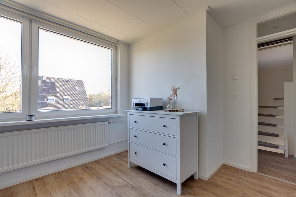 Op de eerste verdieping geeft de overloop toegang tot drie slaapkamers van 14 m², 10 m² en 8 m². De kamers zijn goed bruikbaar en bieden flexibiliteit: een slaapkamer, werkplek of logeerkamer zijn hier eenvoudig te realiseren. De badkamer is compact, netjes en doordacht ingedeeld zodat er niet alleen ruimte is voor een douchehoek en wastafel, maar ook voor een ligbad. Groot pluspunt is de aanwezigheid van een separaat toilet op deze verdieping.