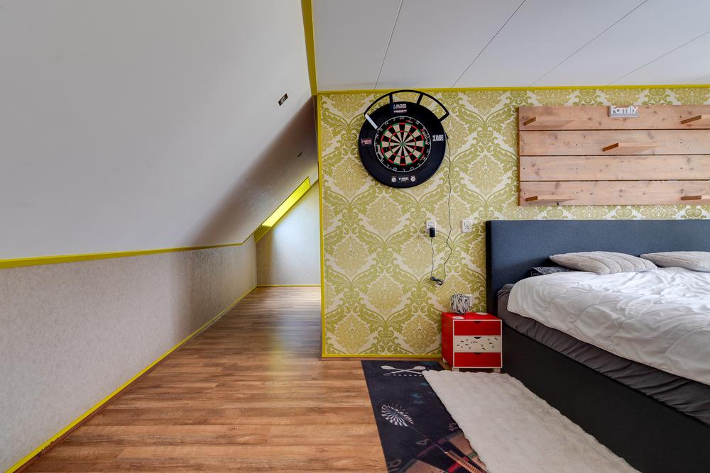 Op de verdieping is volop ruimte voor gezin, logees of hobby’s. In totaal zijn er zes slaapkamers van ± 13 m², 12 m², 12 m², 11 m², 8 m² en 7 m², aangevuld met bergruimte en een vliering. Een praktische indeling waarin iedereen zijn eigen plek heeft zonder dat je op elkaars adem leeft.