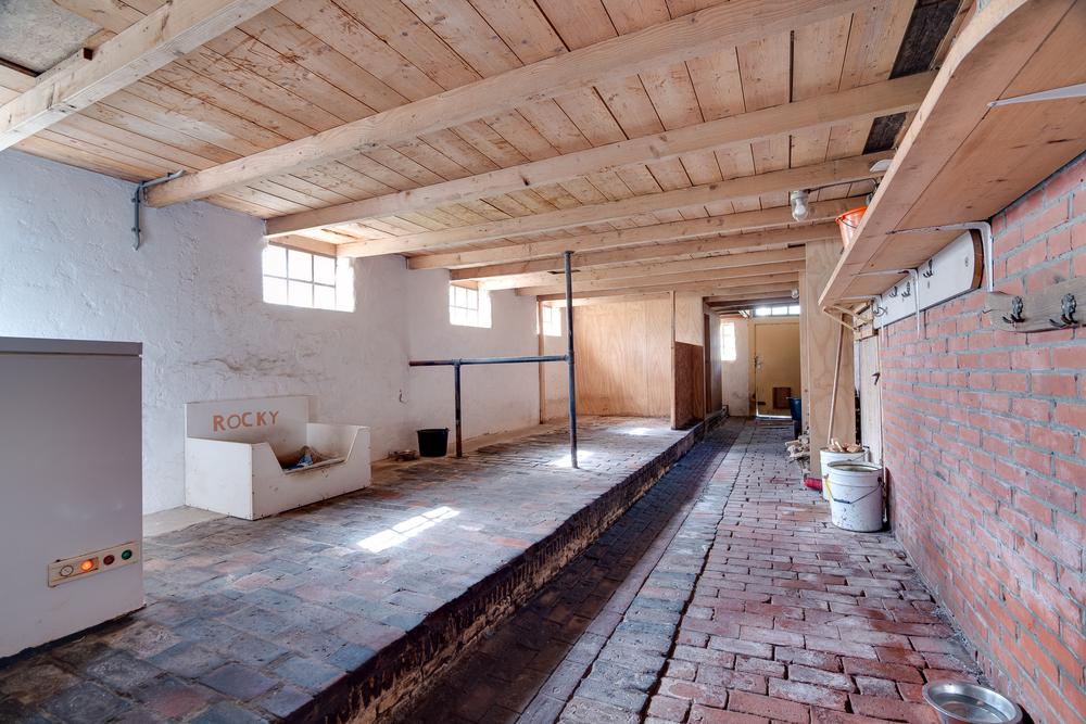 Het woondeel aan de voorzijde (± 45 m²) is overzichtelijk en huiselijk. De woonkamer voelt beschut en knus, terwijl de eetkamer ruimte biedt voor lange avonden aan tafel, met zicht op het buitenleven. De keuken vormt het praktische middelpunt, met directe aansluiting op de bijkeuken en wasruimte.
