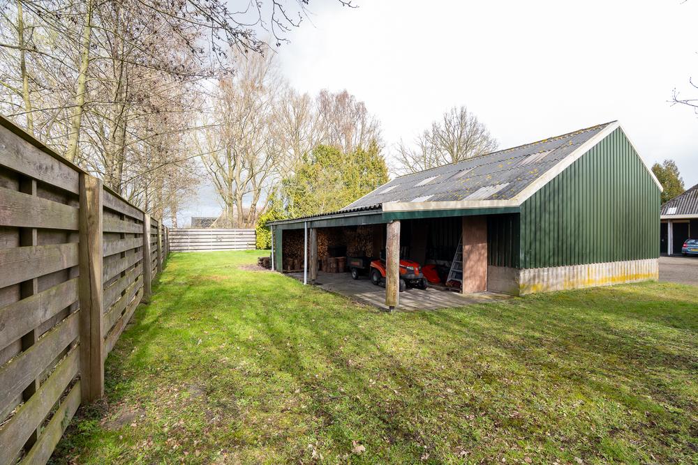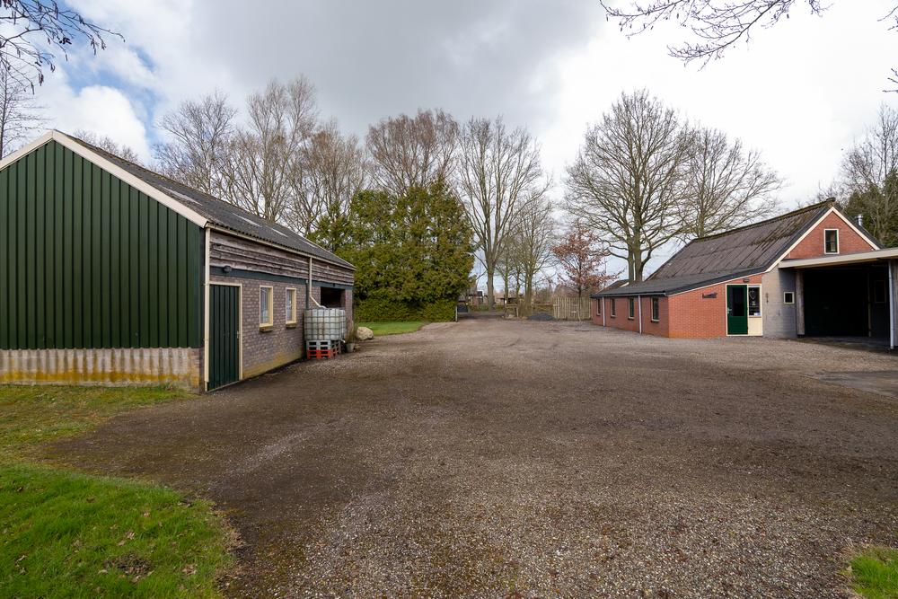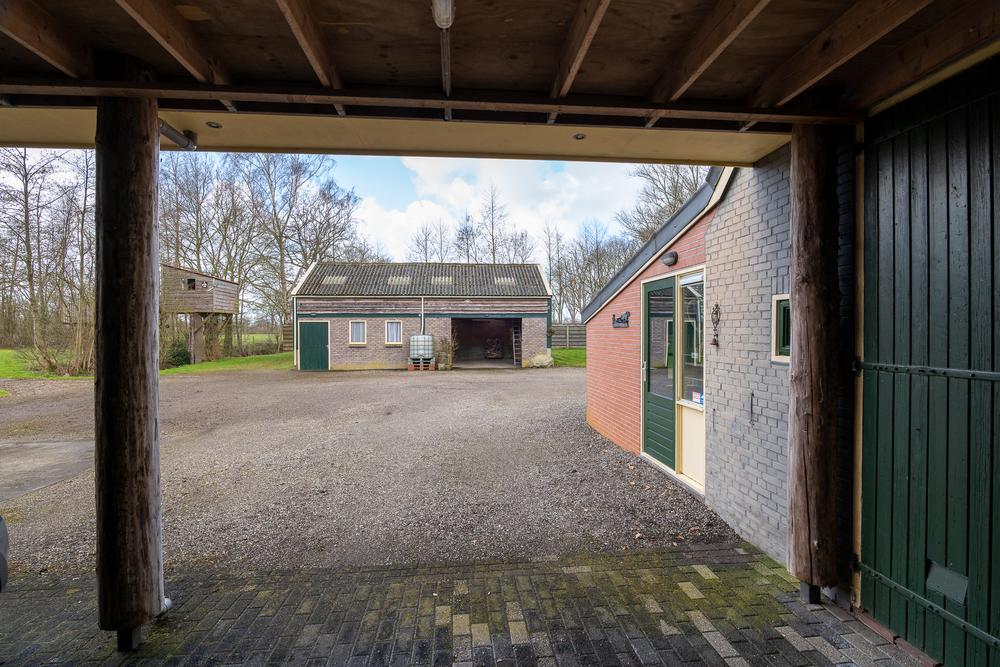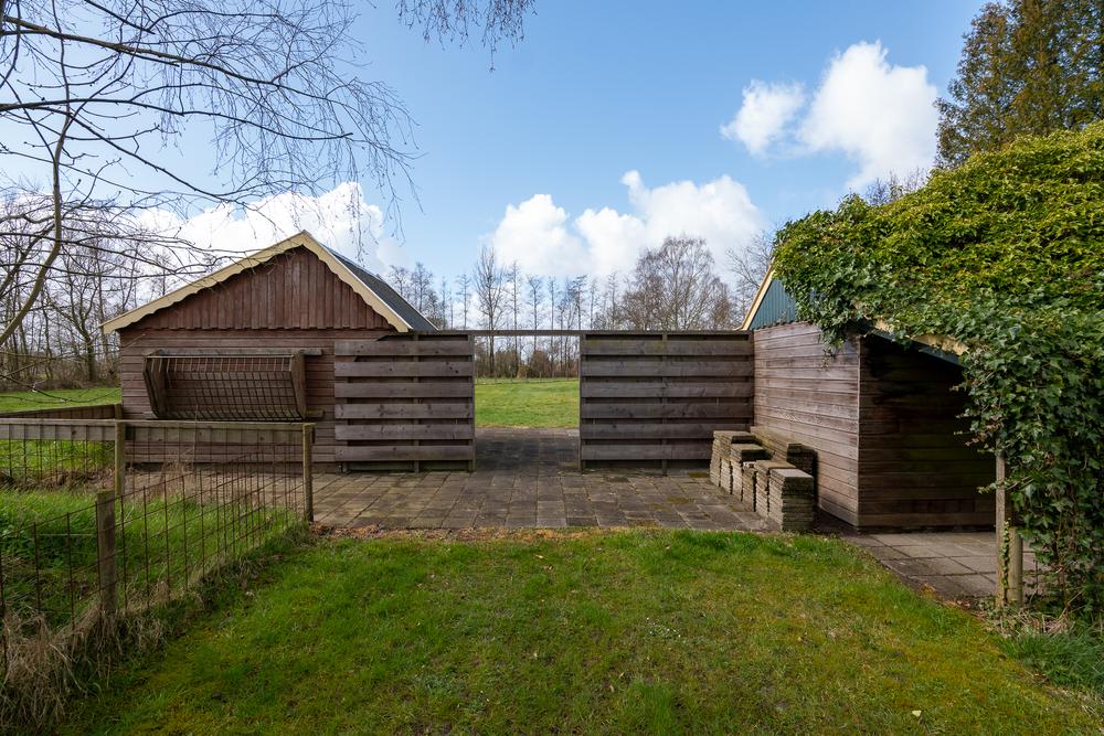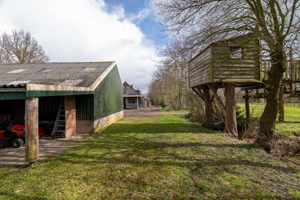 Ook buiten klopt het geheel. Op het erf staan meerdere bijgebouwen (waaronder een boomhut!) en bergruimtes, samen goed voor ± 133 m², ideaal voor opslag, dierenbenodigdheden of hobbygebruik. Het aangrenzende weiland maakt het houden van dieren logisch en overzichtelijk: je woont hier niet naast het landschap, maar er middenin.
